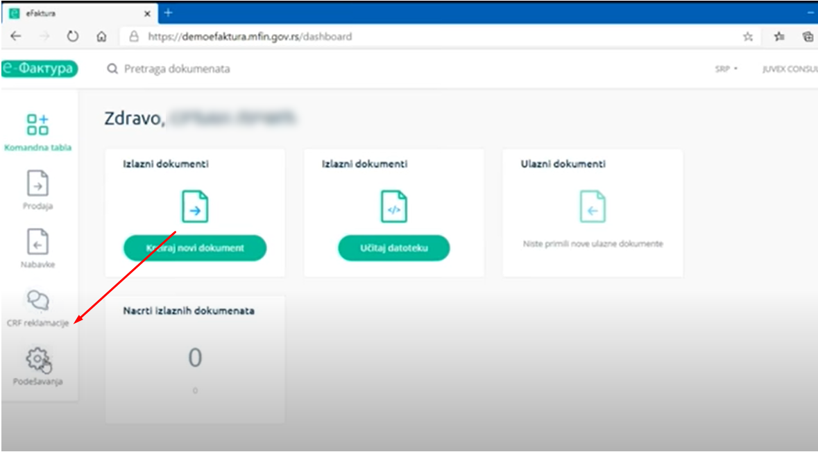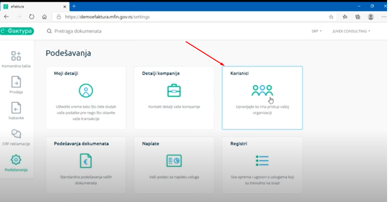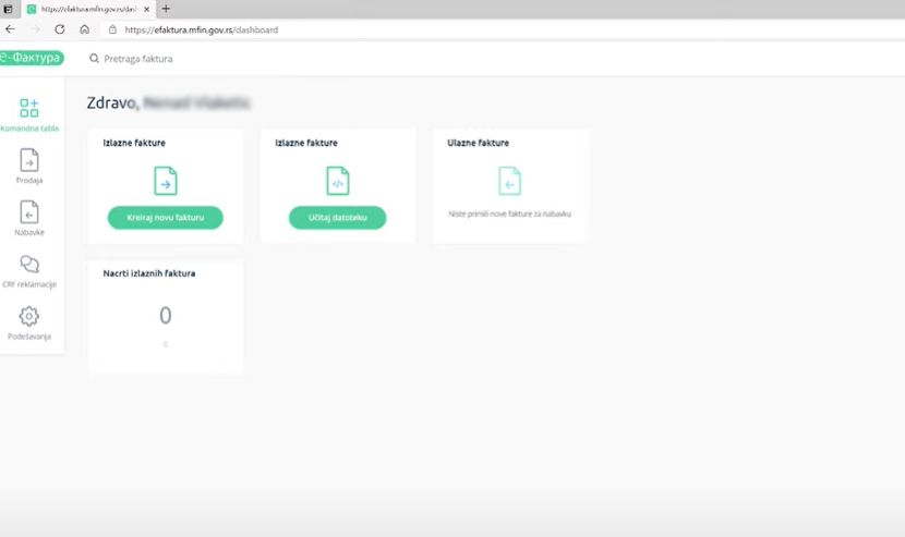 Sistem je proverio da li su podaci tačni i preusmerio vas na novokreirani nalog na sistemu elektronskih faktura