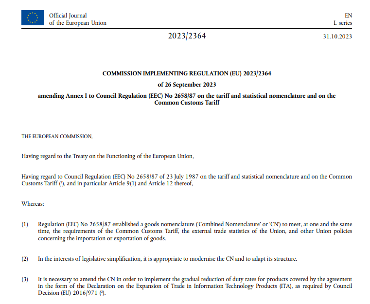 OBJAVLJENA KOMBINOVANA NOMENKLATURA EU ZA 2024. GODINU