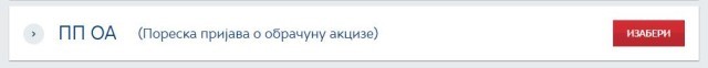 Izbor poreske prijave za akcize koja se podnosi na Obrascu PP OA, a početni poreski period je januar 2018. godine, se nalazi na portalu Poreske uprave u delu "izbor prijave":