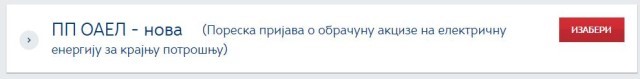 Izbor poreske prijave za akcizu na električnu energiju koja se podnosi na Obrascu PP OAEL, počevši od obračunskog perioda februar 2018. godine, se od 01.01.2018. godine nalazi na portalu Poreske uprave u delu "izbor prijave" pod nazivom PP OAEL – nova (Poreska prijava o obračunu akcize na električnu energiju za krajnju potrošnju):