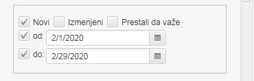 Pored opcije stupanja na snagu, pravilnim odabirom možete doći do informacije koji su sve propisi objavljeni, koji su izmenjeni ili prestali da važe u prethodnom mesecu, kao i u bilo kom drugom vremenskom periodu - zavisno od toga koji period budete sami izabrali.