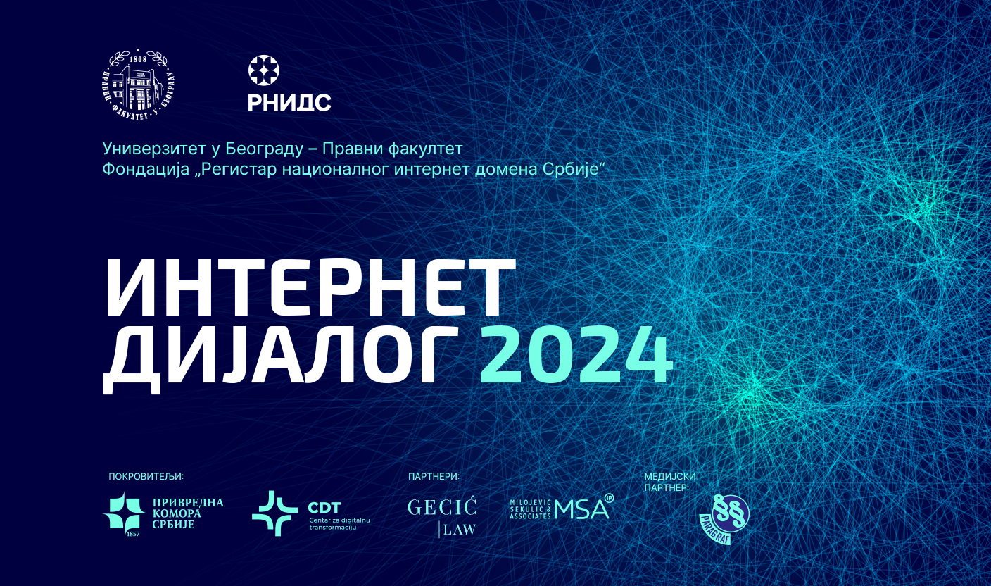 Pravni fakultet Univerziteta u Beogradu i Fondacija “Registar nacionalnog internet domena Srbije” (RNIDS) 8. i 9. aprila 2024. godine po deseti put će organizovati godišnju konferenciju posvećenu pravu interneta. Ovogodišnji “Internet dijalog“ održava se pod pokroviteljstvom Privredne komore Srbije i njenog Centra za digitalnu transformaciju.