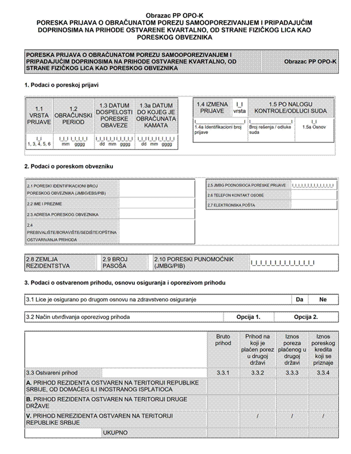 Navedene novododate oznake vrsta prihoda omogućavaju fizičkim licima koja su obveznici plaćanja poreza i doprinosa samooporezivanjem, da za ostvarene prihode u svakom kvartalu, a u skladu sa statusom socijalnog osiguranja i dokazima o plaćenom porezu za ostvareni prihod u drugoj državi, pri podnošenju poreske prijave na obrascu PP OPO-K obračunaju i plate:
