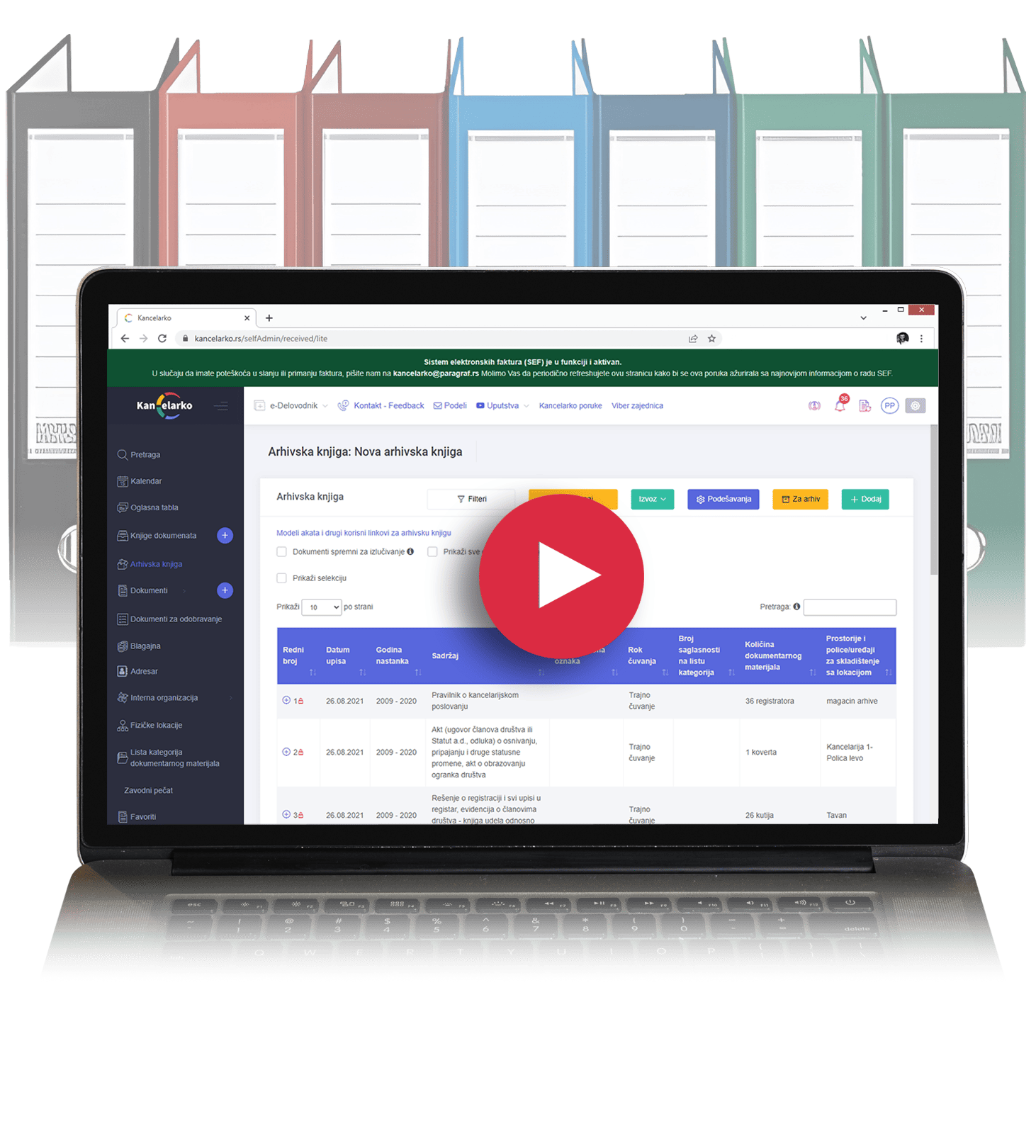 dokumenata/delovodne knjige