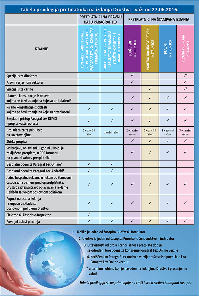 - Posebna pravila i uslovi pretplate na "Paragraf Lex"