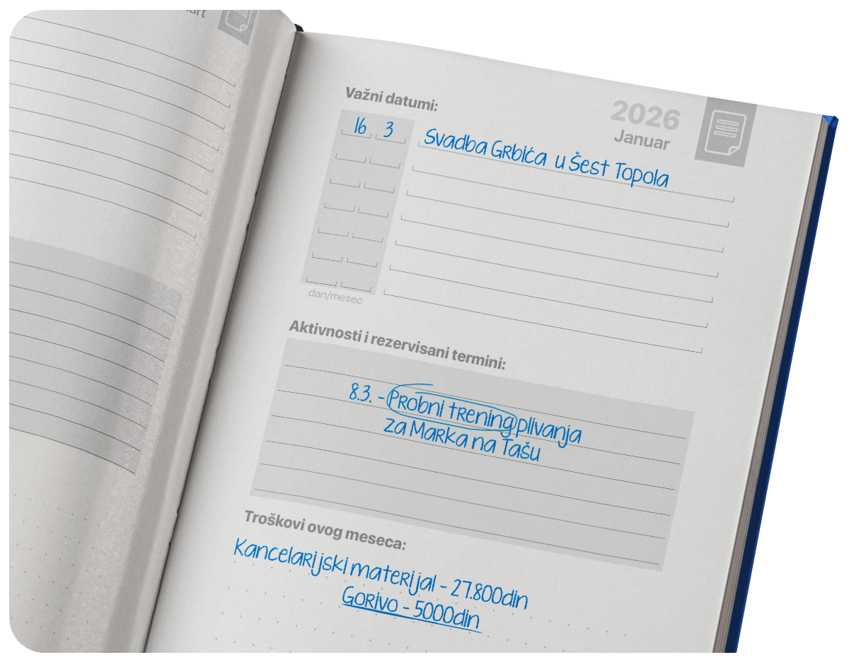 Ravnoteža između poslovnog i privatnog uz prostor za lične beleške.