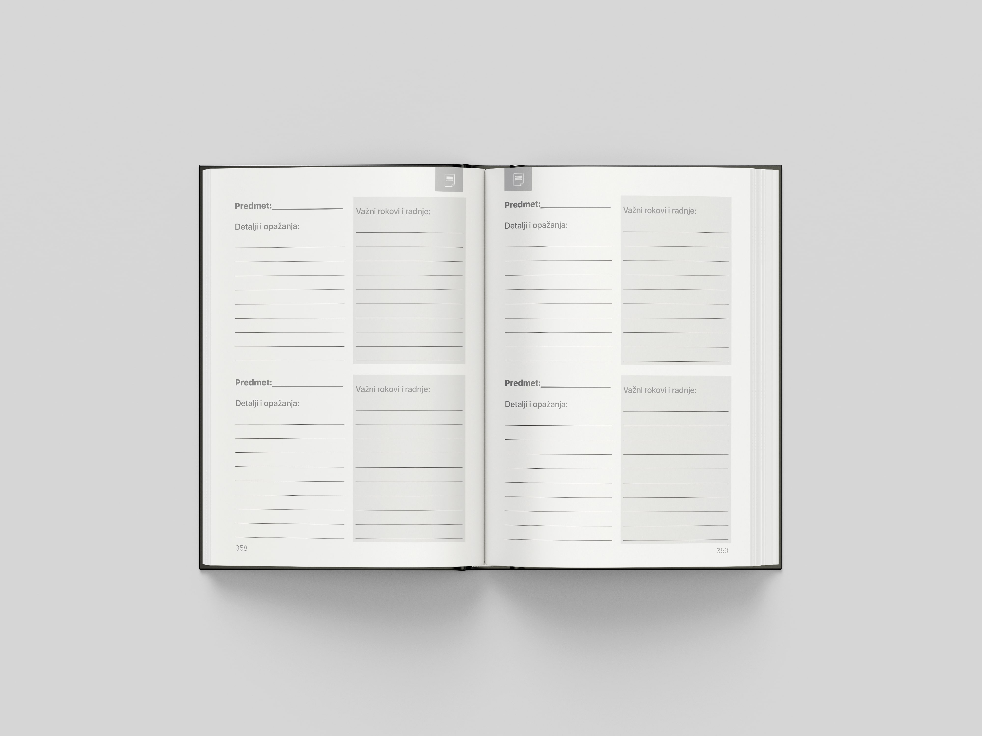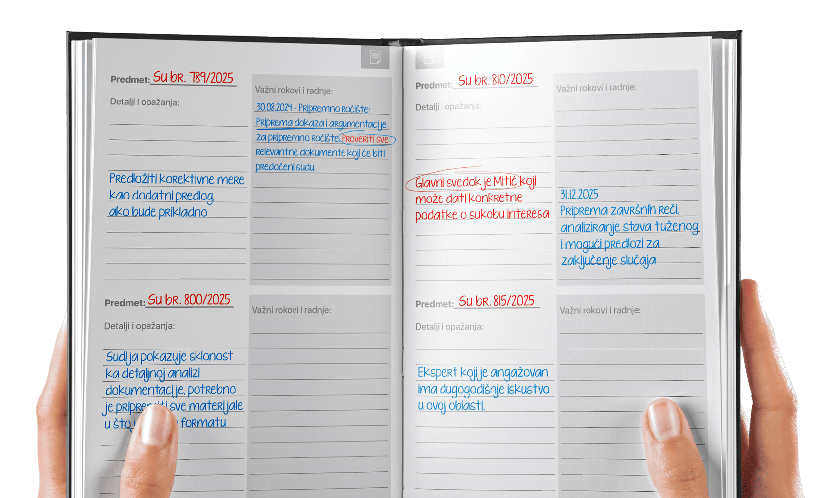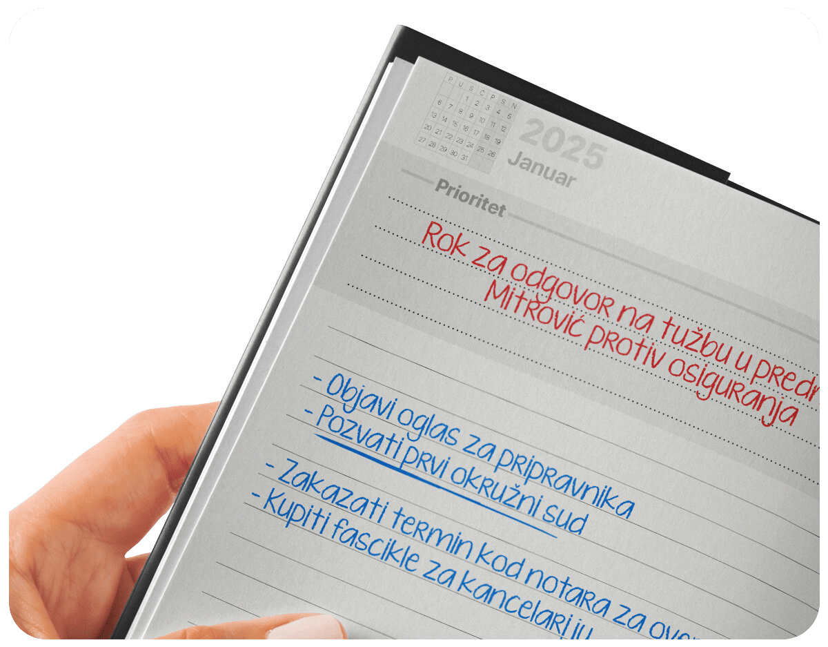 Praktična stranica za evidenciju broja predmeta, važnih rokova i ličnih zapažanja