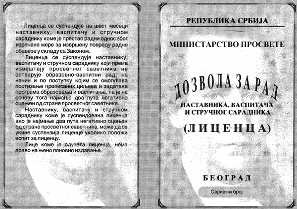 PRAVILNIK O DOZVOLI ZA RAD NASTAVNIKA, VASPITAČA I STRUČNIH SARADNIKA("Sl. glasnik RS", br. 22/2005, 51/2008, 88/2015, 105/2015, 48/2016 i 9/2022) |