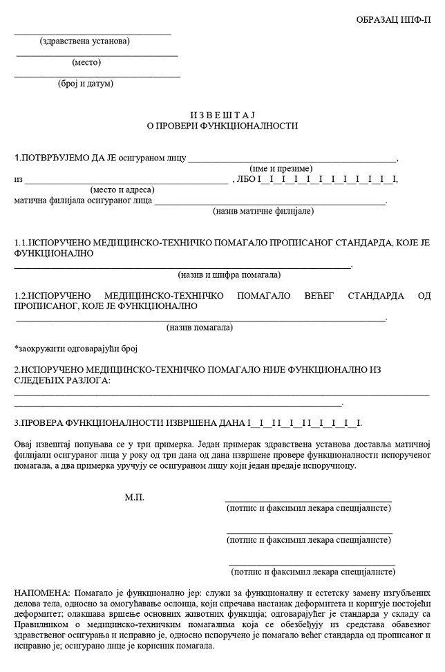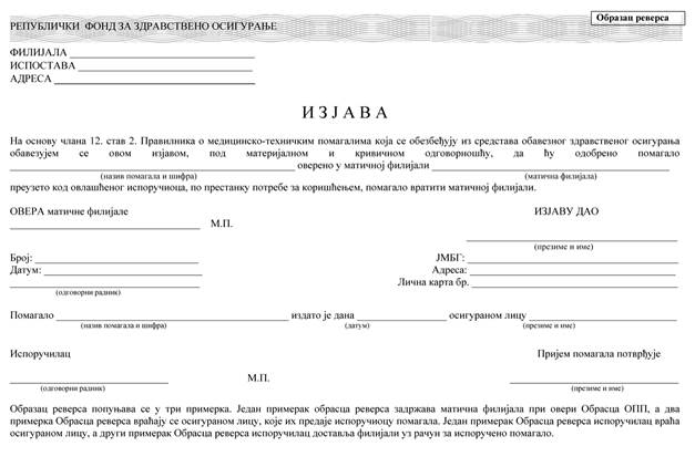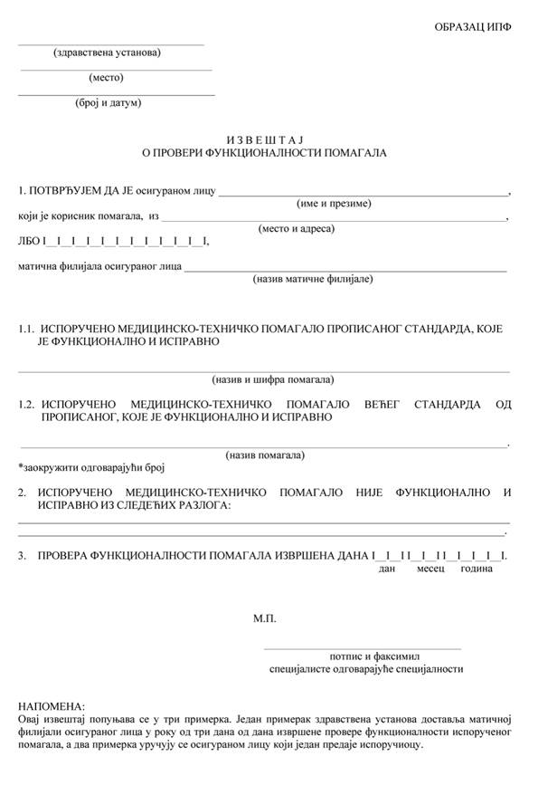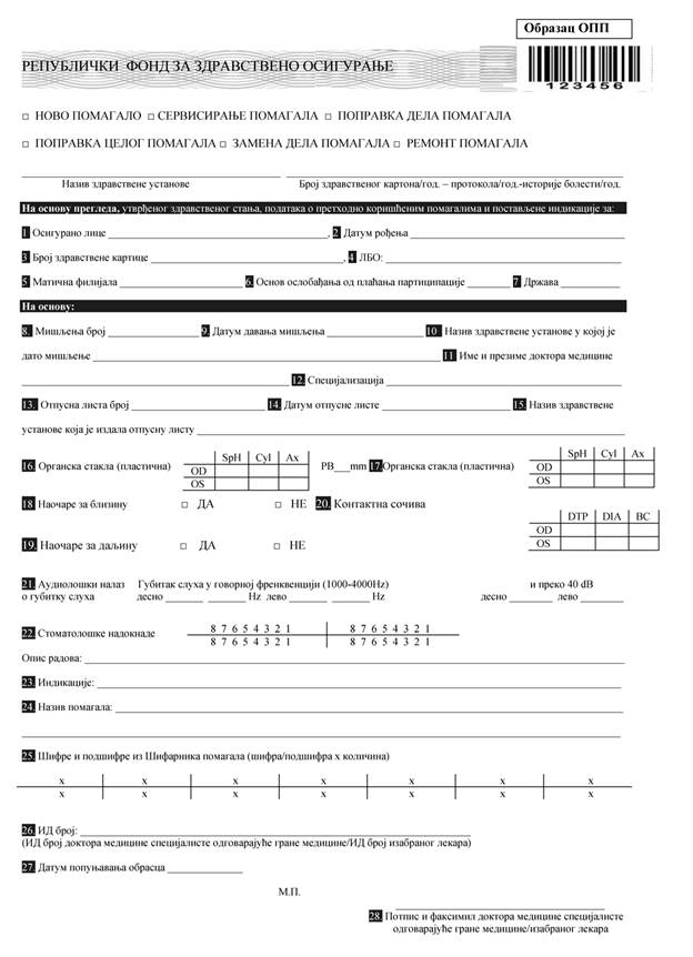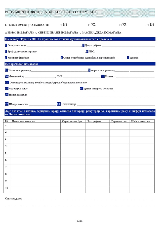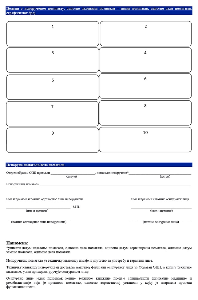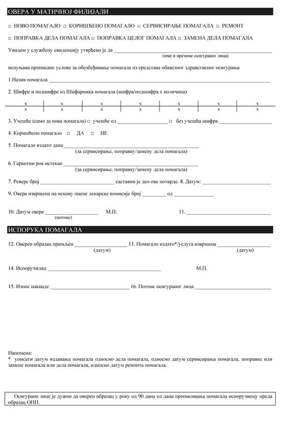 OBRAZAC ZA PROPISIVANJE, ODRŽAVANJE I REMONT POMAGALA