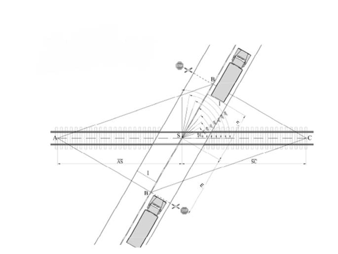 S - tačka u kojoj se seku osa koloseka železničke pruge i osa kolovoza puta, od koje se meri izračunata dužina potrebne preglednosti sa puta na železničku prugu, na oba pravca i to: pravac A-S i pravac C-S.