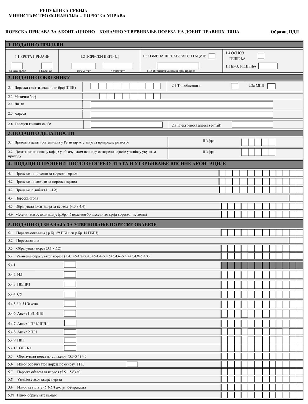Poresku prijavu na Obrascu PDP - Poreska prijava za akontaciono - konačno utvrđivanje poreza na dobit pravnih lica, koja je propisana Pravilnikom o sadržaju poreske prijave za obračun poreza na dobit pravnih lica ("Službeni glasnik RS", broj 30/15), obveznik podnosi zaključno sa 31. decembrom 2016. godine, odnosno posle 1. januara 2017. godine, u slučaju podnošenja: