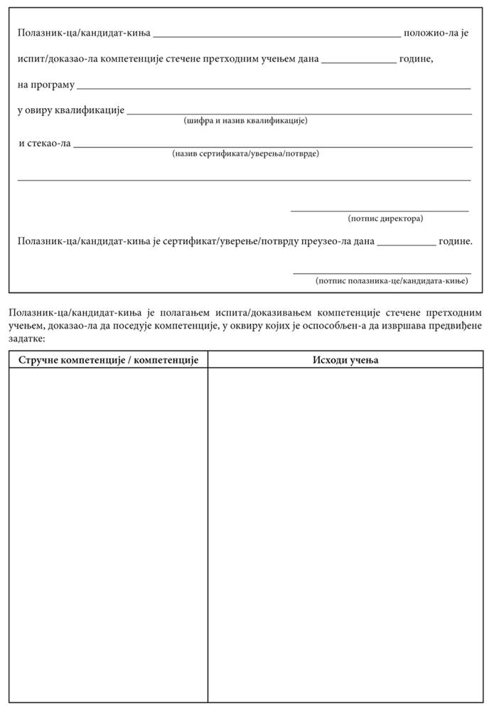 Uverenje se izdaje za delimično ostvaren standard stručnih kompetencija.