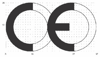 CE znak usaglašenosti se sastoji od stilizovanog latiničnog slovnog znaka "CE" u sledećem obliku: