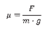 Na osnovu srednje vrednosti sile kočenja, iz tri ponovljena merenja, i izmerene mase, koeficijent trenja između površine na koju naleže pneumatik i pneumatika, određen je formulom:
