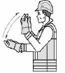 Desna ruka podignuta u vis sa dlanom okrenutim napred, polako kruži. |