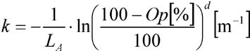 Rezultat merenja opacimetrom može se izraziti i/ili u koeficijentu apsorpcije izraženom u m-1.