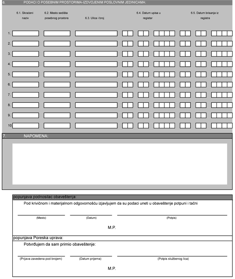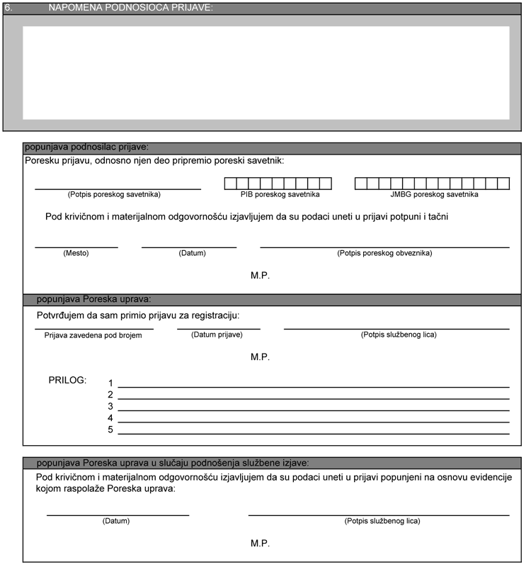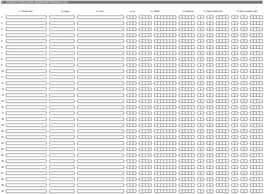 PRIJAVA ZA REGISTRACIJU PRAVNOG LICA I POSLOVNIH JEDINICA