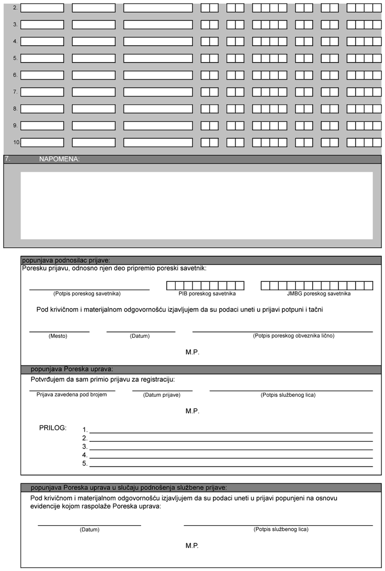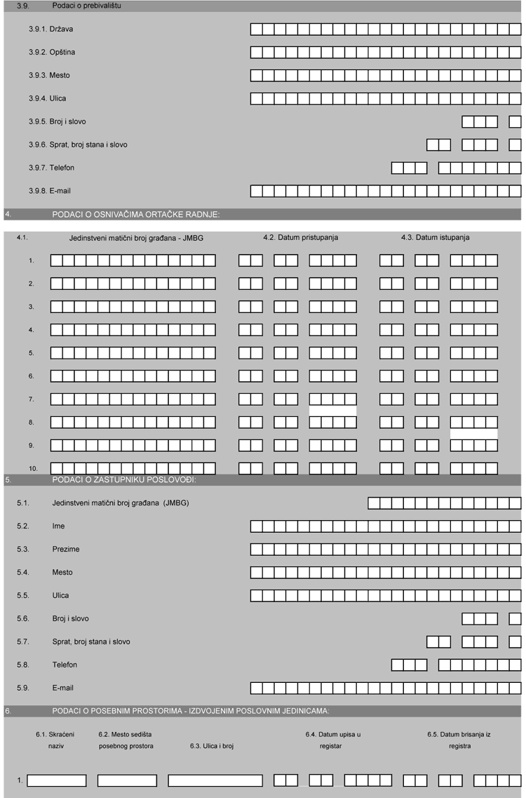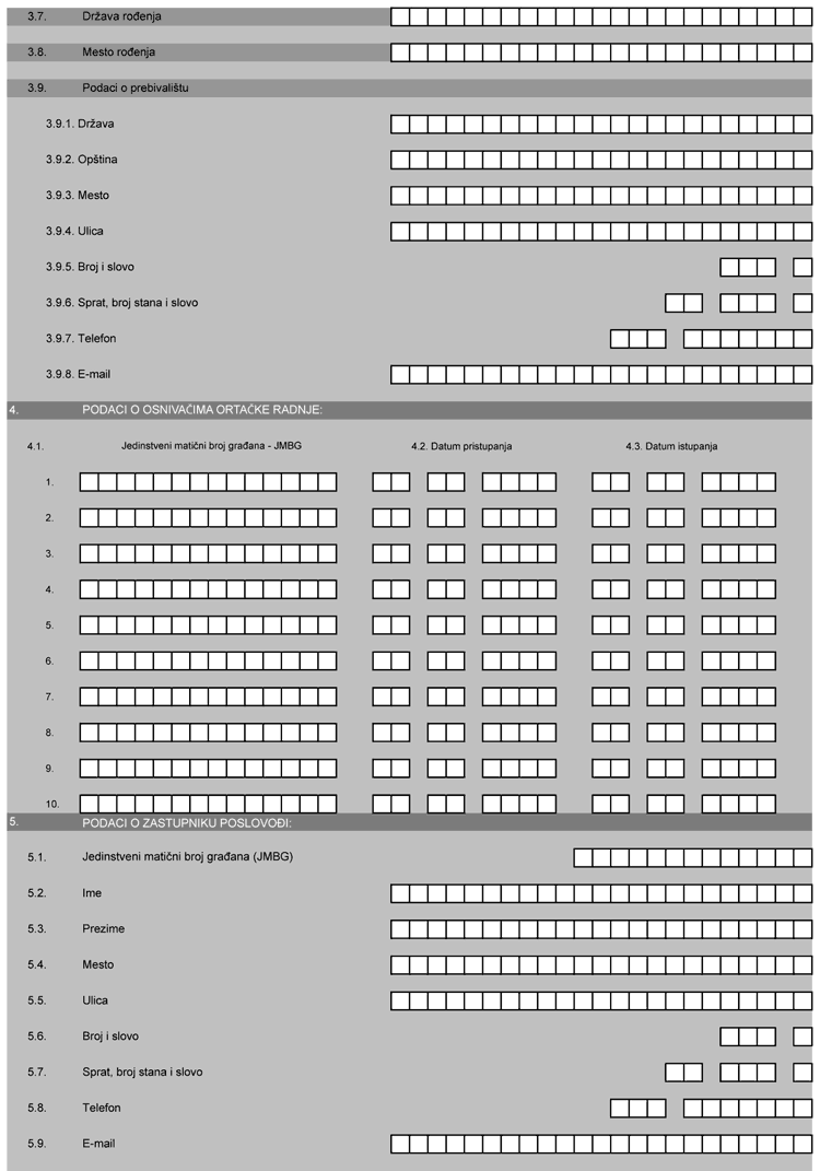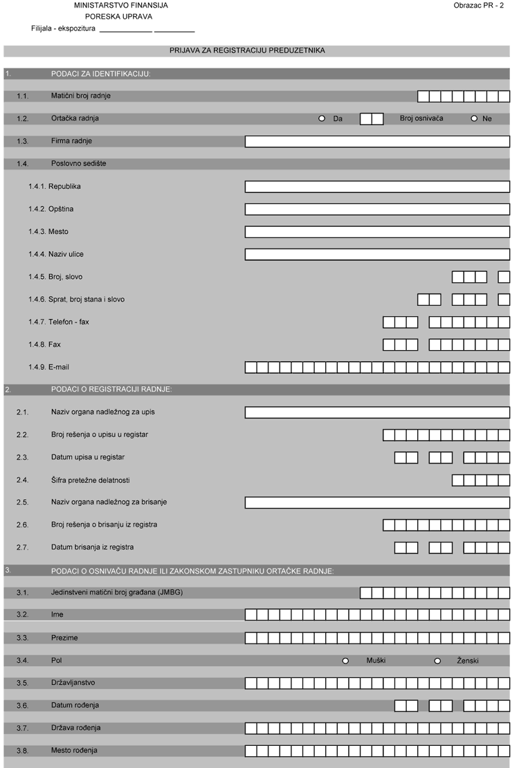 PRIJAVA ZA REGISTRACIJU PREDUZETNIKA
