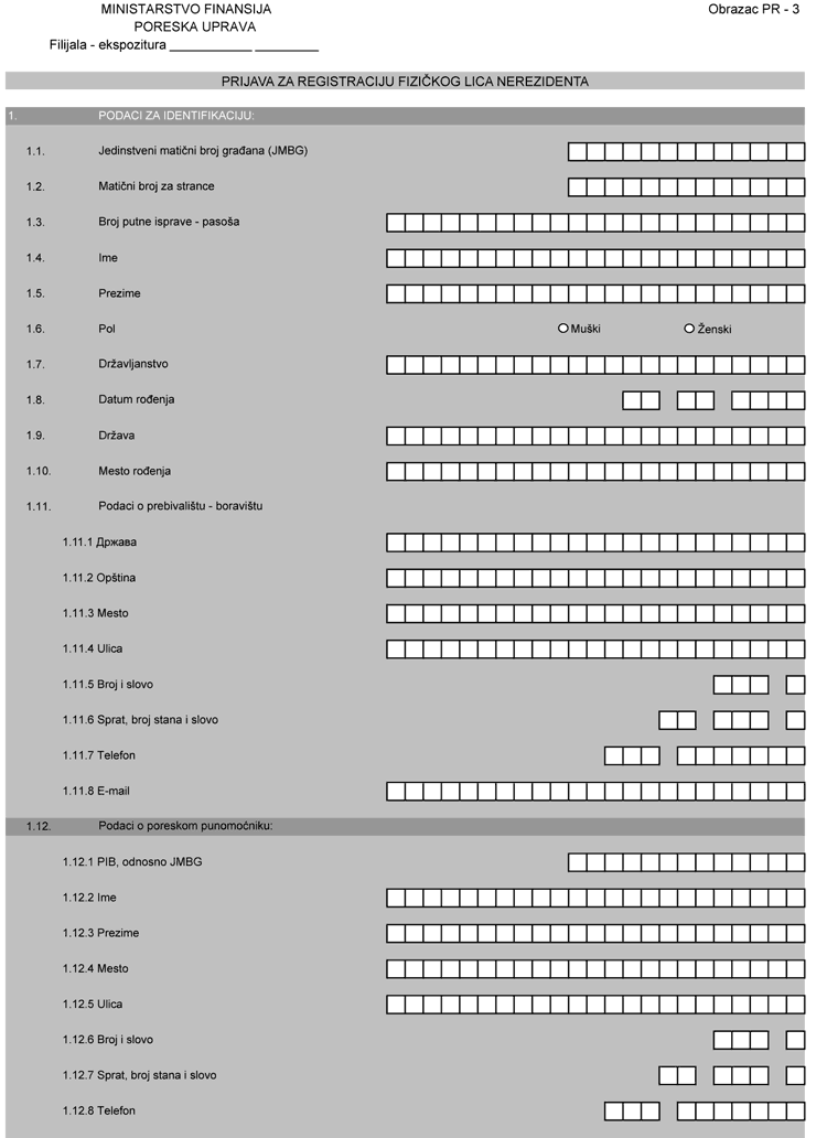 Prijavu za registraciju na Obrascu PR-3 podnosi nerezidentno fizičko lice.
