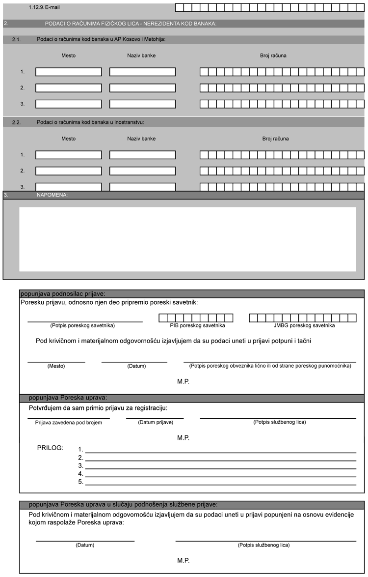 PRIJAVA ZA REGISTRACIJU FIZIČKOG LICA NEREZIDENTA