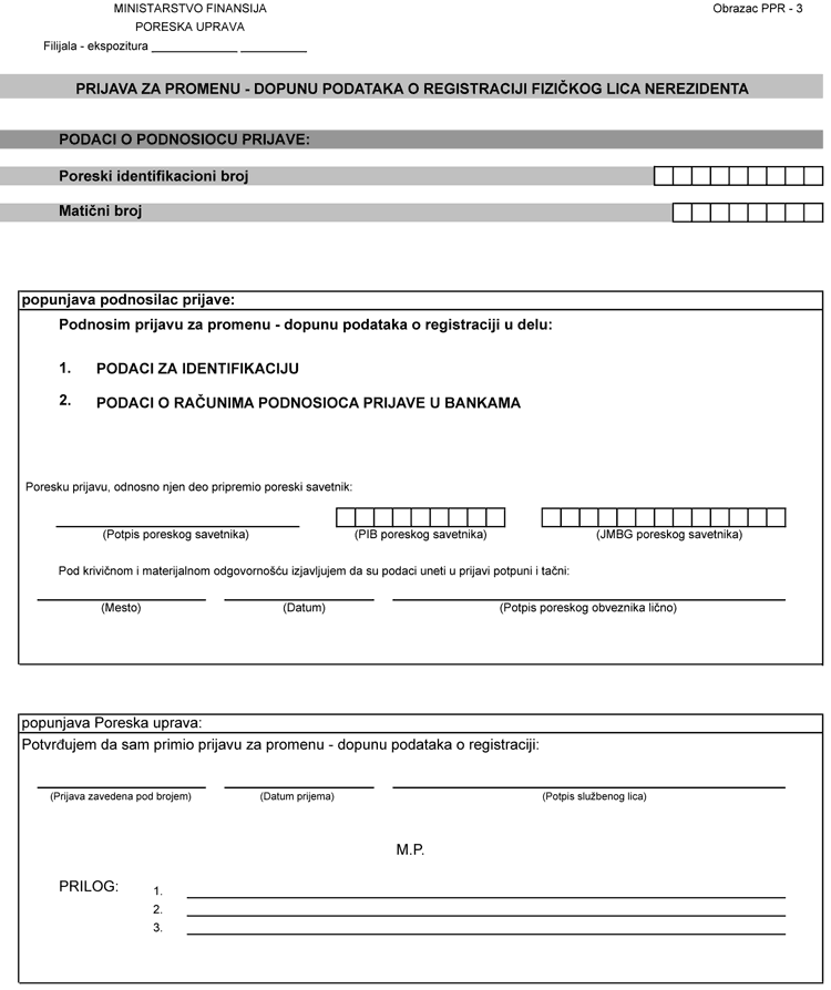 PRIJAVA ZA PROMENU - DOPUNU PODATAKA O REGISTRACIJI FIZIČKOG LICA NEREZIDENTA