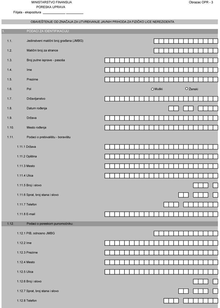 OBAVEŠTENJE OD ZNAČAJA ZA UTVRĐIVANJE JAVNIH PRIHODA ZA FIZIČKO LICE NEREZIDENTA