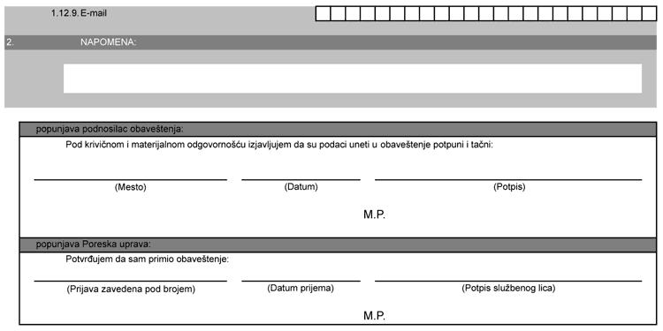 OBAVEŠTENJE OD ZNAČAJA ZA UTVRĐIVANJE JAVNIH PRIHODA ZA PREDUZETNIKA
