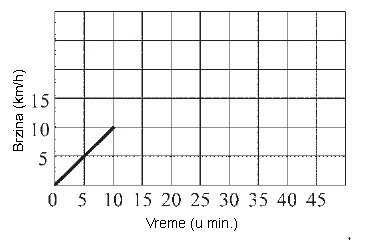 Maja je vozila bicikl 45 minuta. Posle prvih 10 minuta vožnje dostigla je brzinu od 10 km/h. Vozila je tom brzinom narednih 20 minuta, a zatim počela da ravnomerno usporava dok se nije zaustavila. Dopuni dijagram koji prikazuje Majinu vožnju, kao što je započeto.