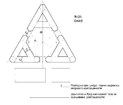2. Srpski znak usaglašenosti se sastoji od tri velika slova A povezana u obliku jednakostraničnog trougla (3A), izgleda i sadržine kao na slici:
