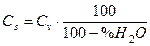 Preračunavanje masenih koncentracija zagađujućih materija u vlažnim otpadnim gasovima na suve vrši se prema sledećoj jednačini: