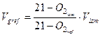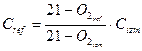 3.2) Preračunavanje zapremine na referentni udeo kiseonika u otpadnom gasu vrši se prema sledećoj jednačini: