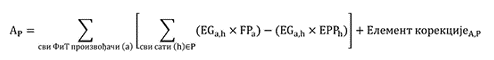 EGa,h - očekivana proizvodnja povlašćenih proizvođača u FiT sistemu podsticaja u MWh u satu h u Periodu naplate, izračunata u skladu sa članom 37. ove uredbe;