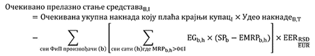 7) očekivana nabavna cena električne energije (EPPh) garantovanog snabdevača utvrđuje se kao cena nabavke električne energije za garantovano snabdevanje u RSD po kWh, koju je priznala i odobrila Agencija za energetiku Republike Srbije u poslednjoj dostupnoj i primenjivoj odluci o davanju saglasnosti na odluku o regulisanoj ceni električne energije za garantovano snabdevanje garantovanog snabdevača, u skladu sa važećom metodologijom za utvrđivanje cene električne energije za garantovano snabdevanje koju je donela Agencija za energetiku Republike Srbije, a pretvorena u RSD po MWh za potrebe proračuna. U slučaju da Agencija za energetiku Republike Srbije stavi van snage odluku o regulisanju cena garantovanog snabdevanja, u skladu sa zakonom kojim se uređuje elektroenergetika, očekivana nabavna cena električne energije (EPPh) će se odrediti u iznosu koji odgovara očekivanoj tržišnoj referentnoj ceni (EMRPh) utvrđenoj u skladu sa ovom uredbom;