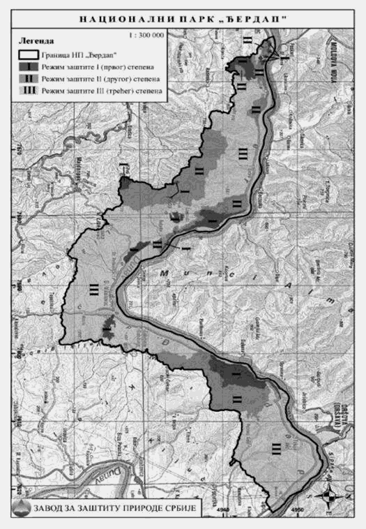 Područje Nacionalnog parka "Đerdap" prostire se na teritoriji opština: Golubac, Majdanpek i Kladovo, u okviru 17 katastarskih opština: Golubac, Brnjica, Dobra, Boljetin, Majdanpek, Donji Milanovac, Mosna, Topolnica, Golubinje, Miroč, Petrovo Selo, Tekija, Novi Sip, Davidovac, Manastirica, Kladušnica i Podvrška, ukupne površine 63.786,48 ha, od čega je 45.454,87 ha u državnoj svojini, a u privatnoj i drugim oblicima svojine 18.331,60 ha, od čega je I stepenom obuhvaćeno 8,01%, II stepenom 21,50% i III stepenom 70,79% ukupne površine, na dan stupanja na snagu ovog zakona.